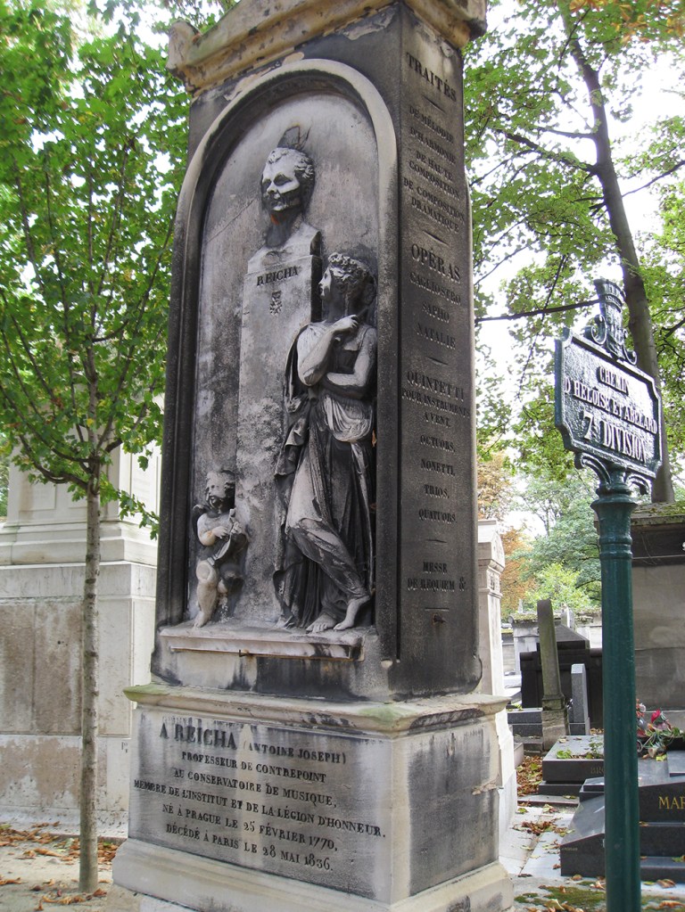 Antoine Reicha meurt en 1836, neuf ans après Beethoven. Sa dépouille repose au cimetière Père Lachaise où la stèle érigée en 1837 rappelle le génie du compositeur: À Reicha (Antoine Joseph), professeur de contrepoint, au conservatoire de musique, membre de l’Institut et de la Légion d’honneur, né à Prague le 25 février 1770, décédé à Paris le 28 mars 1836.